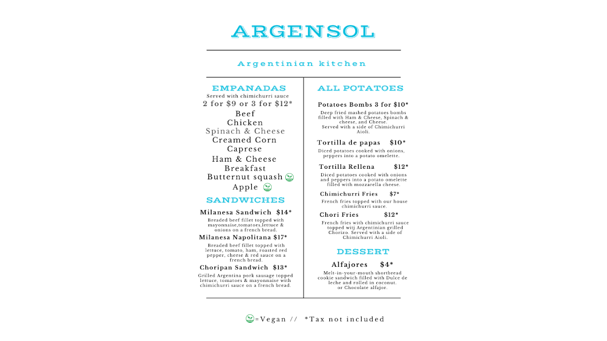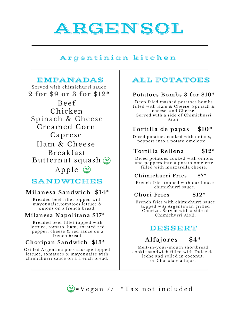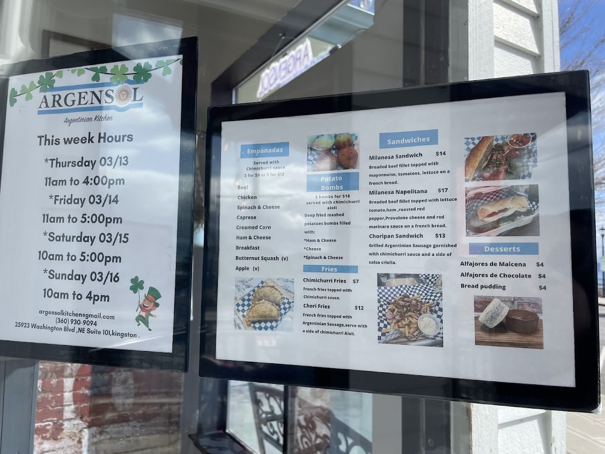 Looking for a place where you can enjoy a laid-back meal with a variety of delicious options? You’ve come to the right spot! The Argensol Menu offers something for everyone, whether you're in the mood for comfort food or craving something a bit more adventurous. Located at 25923 Washington Blvd NE Suite 101, Kingston, WA, it's the perfect destination for a cozy meal with friends or a quiet dinner after a busy day. From fresh salads to hearty mains and mouthwatering desserts, each dish is prepared with care, ensuring you get the best flavors in every bite. Don’t forget to check out the daily specials-there’s always something new and exciting to try! With a welcoming atmosphere and a menu that feels like home, every visit is an opportunity to explore new favorites.